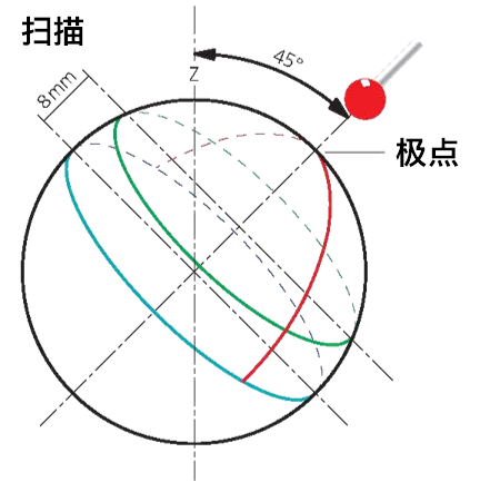 标准球用来检查探头的探测误差及扫描误差,也就是MPE-P(球上打25 个点算最大最小半径差)&MPE-THP(扫描四条线,算最大与最小的半径差)ISO 10360-4;